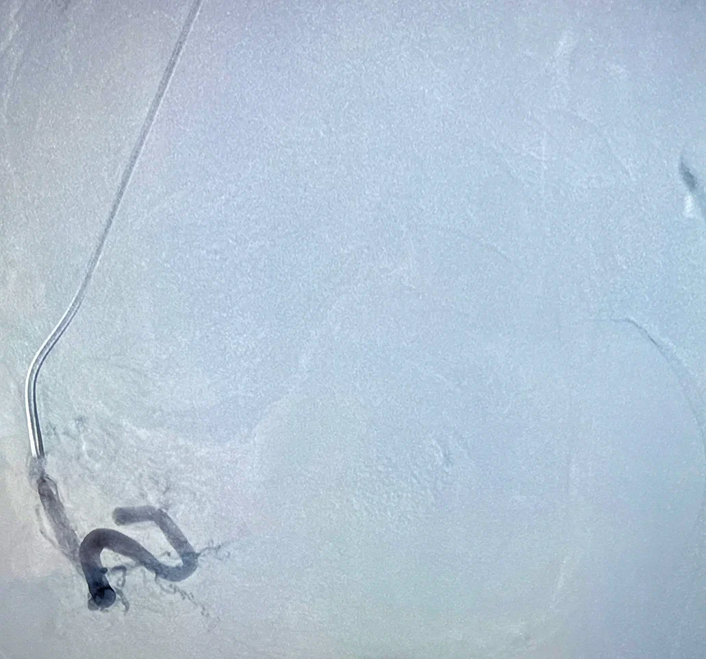 Удалить такой узел было крайне сложно. Чтобы сохранить в целости матку и уберечь от возможных повреждений артерии и мочеточники, врачи-гинекологи совместно с эндоваскулярными хирургами решили выполнить эмболизацию маточных артерий.