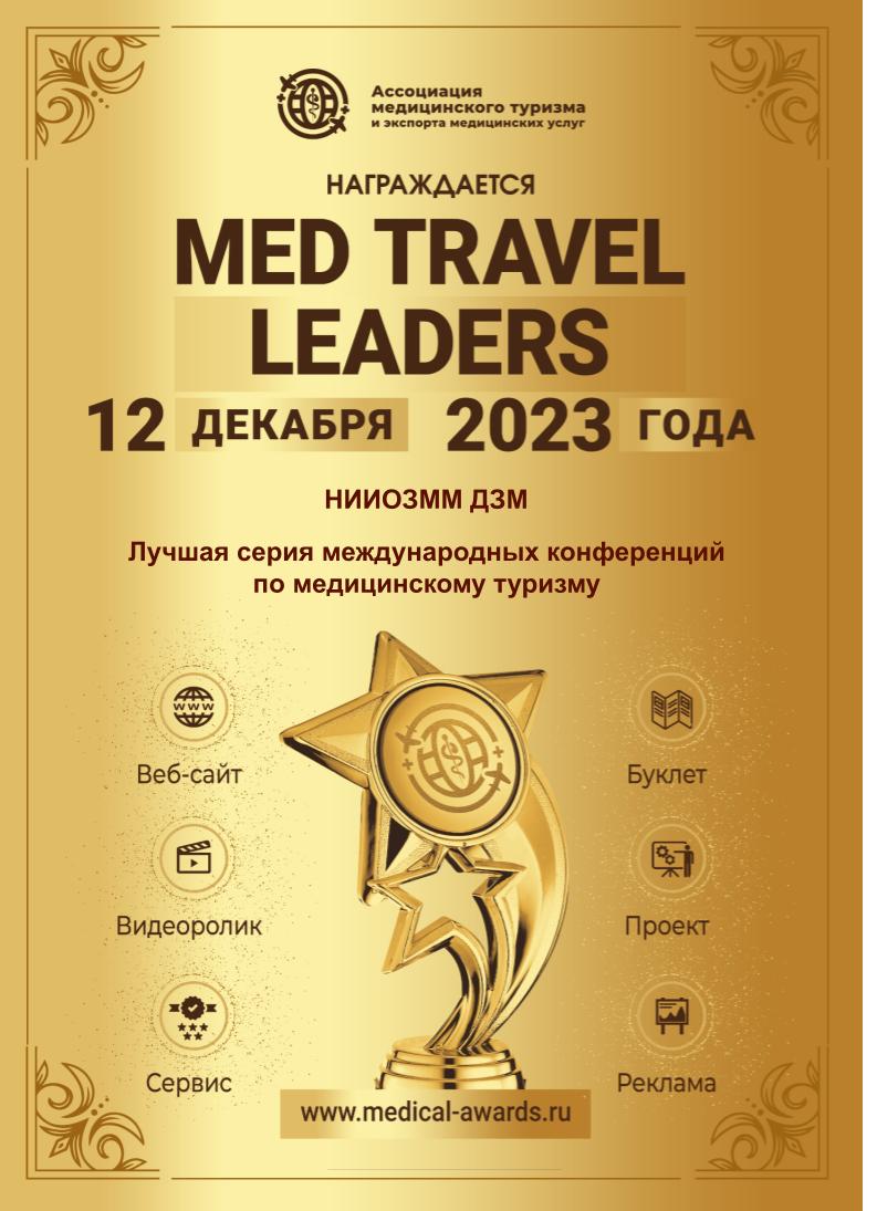 12 декабря 2023 года состоялось подведение итогов IV Всероссийского конкурса по медицинскому туризму и экспорту медицинских услуг Med Travel Leaders – 2023, в котором приняли участие проектные офисы по реализации региональных проектов «Развитие экспорта медицинских услуг» в составе одноименного федерального проекта, представители научных и медицинских организаций. Участники конкурса представили достижения в области медицинского туризма в виде стандартизированных конкурсных заявок, которые были рассмотрены конкурсной комиссией в составе представителей Минздрава России, Министерства экономического развития РФ, Российского экспортного центра.