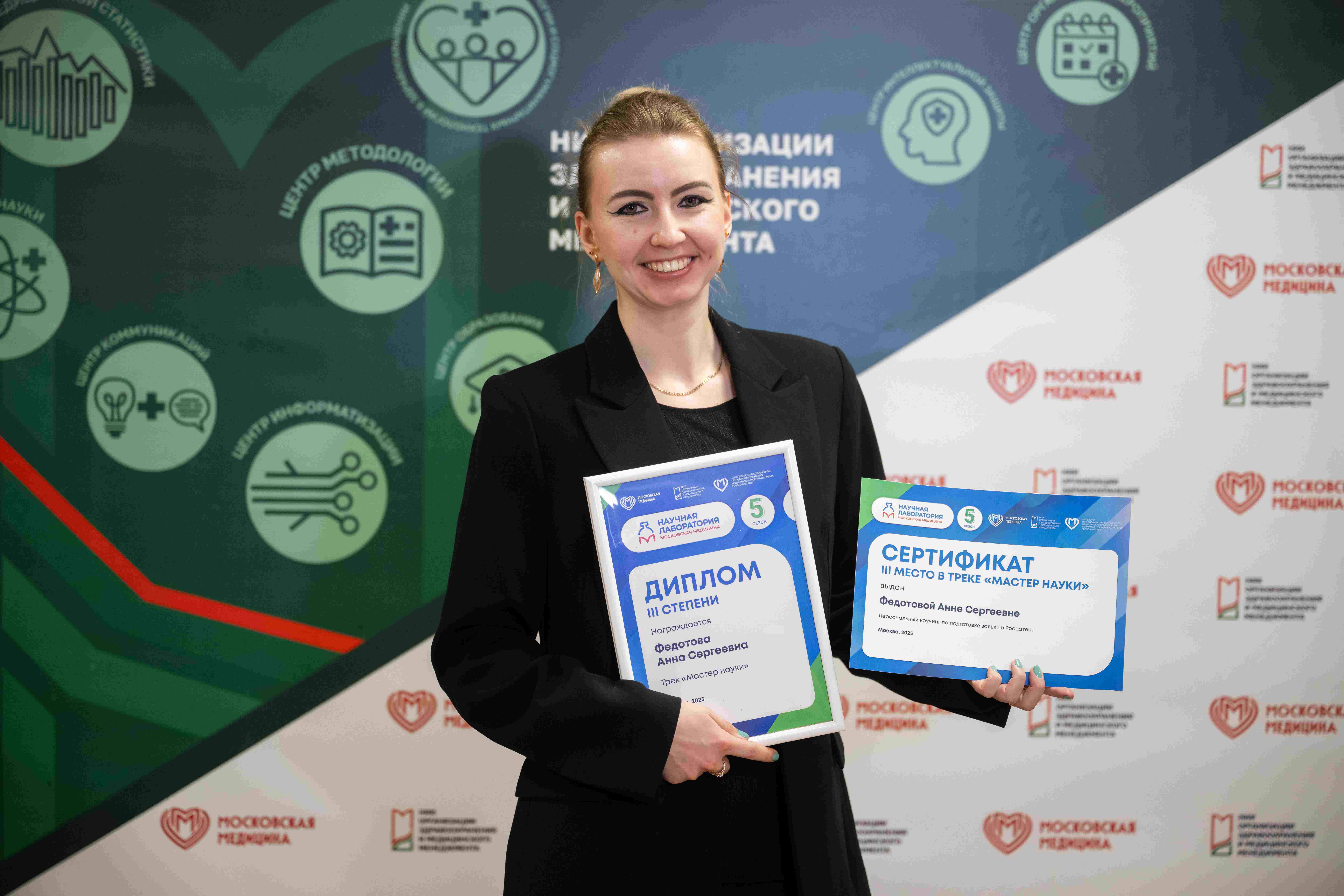 Также перед слушателями выступили победители ежегодного конкурса «Лидер исследований в здравоохранении 2025» по двум номинациям: «Исследование в амбулаторных условиях» и «Исследование в стационарных условиях». Они смогли лично представить свои идеи лицам, принимающим решения в сфере здравоохранения Москвы. Их работы были отмечены дипломами и памятными подарками.